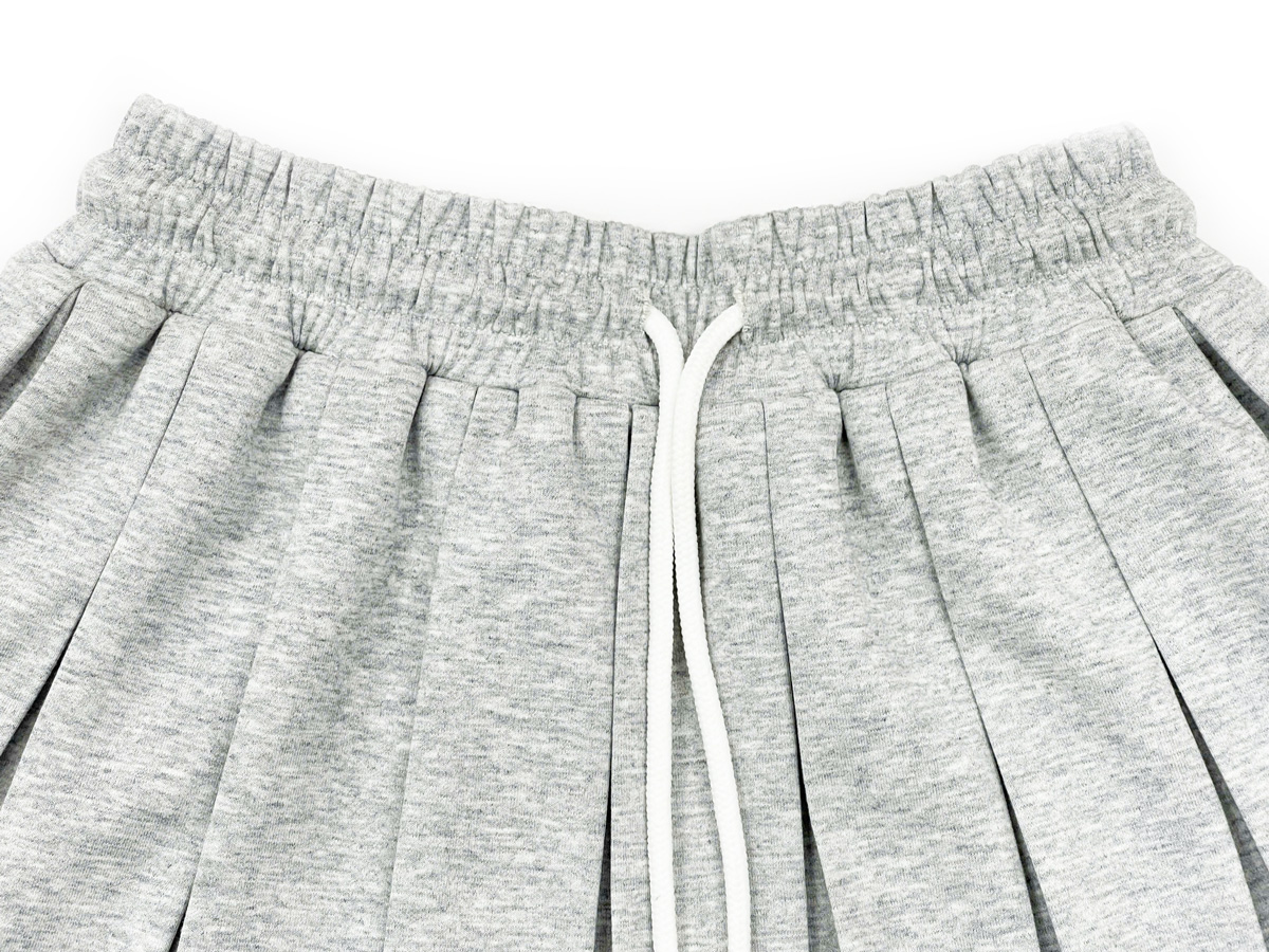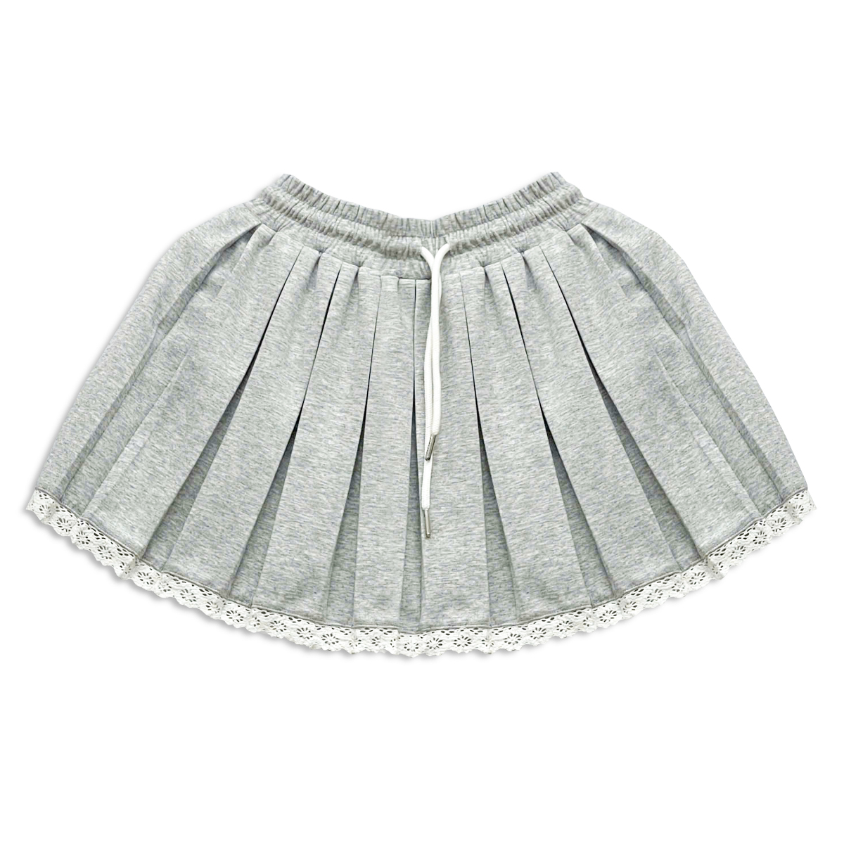 This short, wide-pleated skirt features an elastic waistband with a drawstring for an adjustable fit. Made from a breathable, slightly stretchy knit (likely a cotton blend), it offers comfortable wear. A lace trim at the hem adds a feminine touch, making it ideal for casual or playful street-style looks.