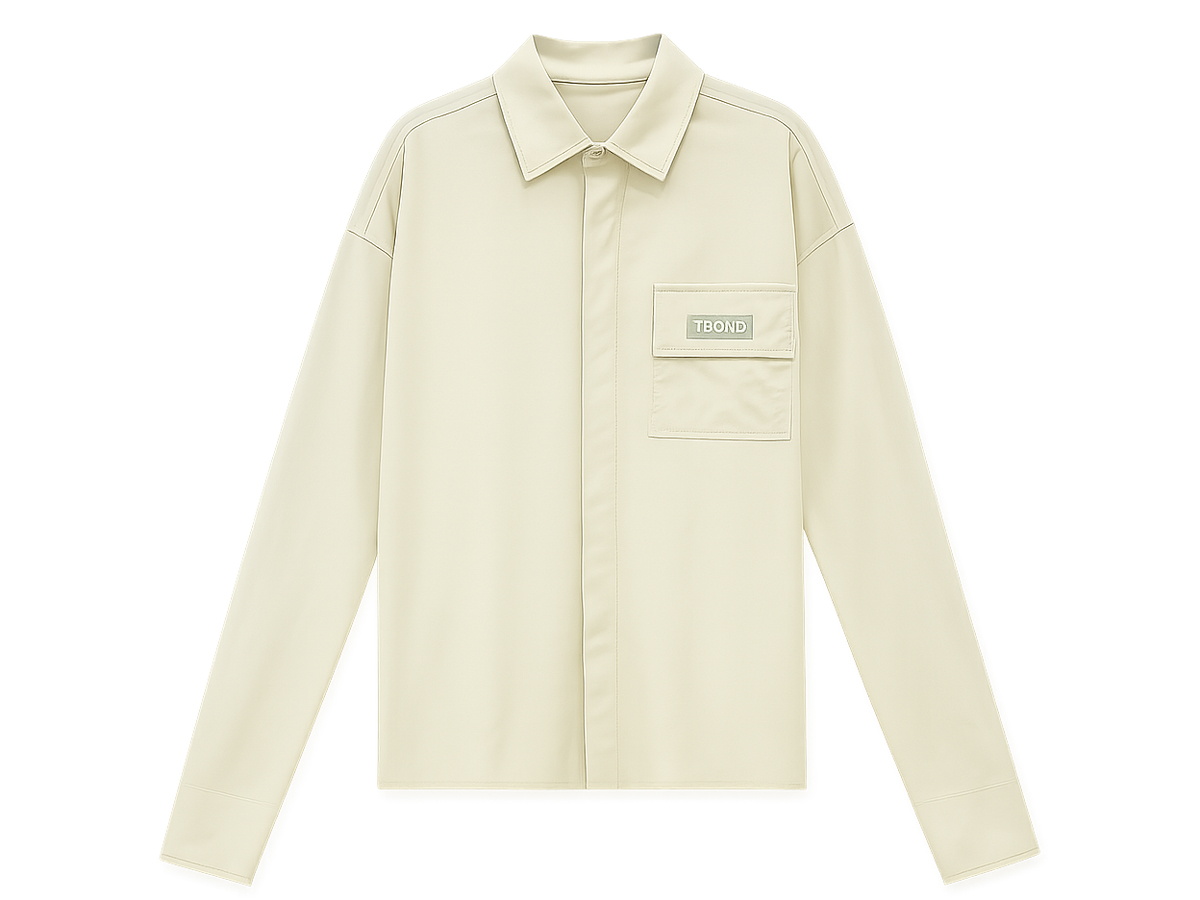 Long-sleeve shirt with a relaxed fit, minimalist and elegant. Made from a soft cotton-silk blend with a slight sheen. Features a front utility pocket and embroidered logo for a modern touch. Easy to pair with jeans, trousers, or layered over a t-shirt.